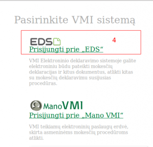 4. Po šių žingsnių Jus turi nukreipti į VMI puslapį, kuriame turite pasirinkti Prisijungti prie EDS (4).