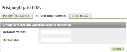 2. Prisijunkite prie VMI naudodami savo prisijungimo duomenis paspaudę ant Su VMI priemonėmis.